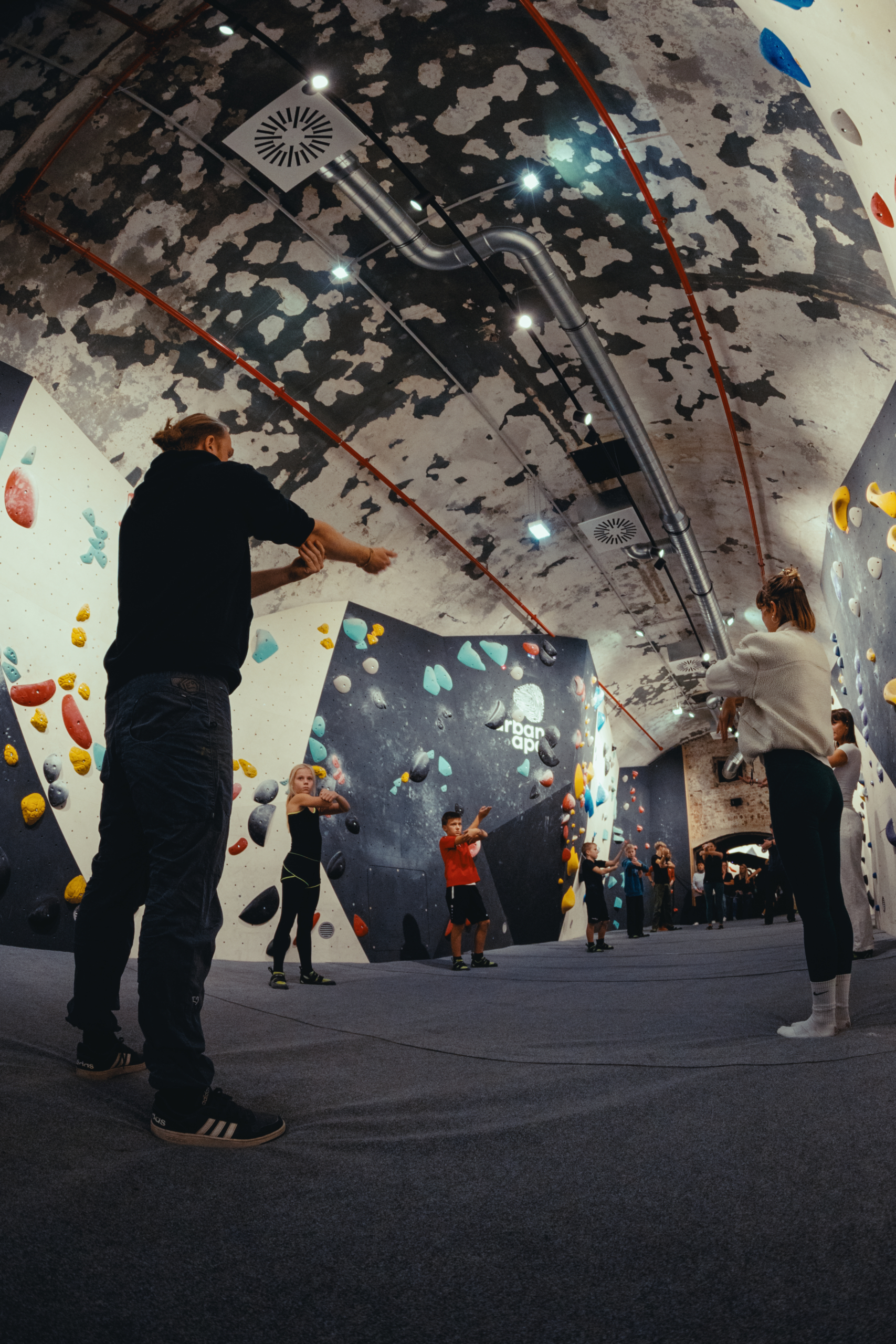 ♣ 14 bis 18 Jahren: Jugendliche dürfen unter Aufsicht in der gesamten Halle bouldern.